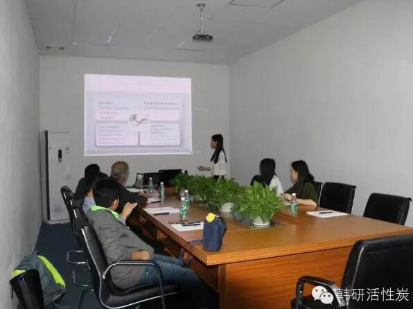 我司外貿(mào)總監(jiān)Jane 帶領來訪的客戶們參觀了我司的證書展示區(qū)(各種認證及專利)、產(chǎn)品展示區(qū)、研發(fā)實驗室、蜂窩活性炭生產(chǎn)車間、椰殼活性炭生產(chǎn)車間等等,讓他們更加真真切切地感受到韓研強大的技術(shù)研發(fā)及生產(chǎn)能力。