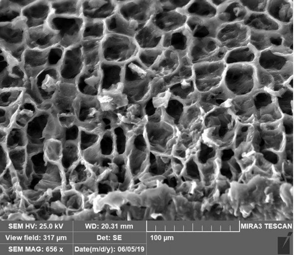 對一個(gè)碳化硅樣品進(jìn)行掃描電鏡(SEM)成像,以確定其表面白色物質(zhì)的組成。在掃描電子顯微鏡下分析時(shí),確定該材料為碳化硅纖維,范圍為6-10µm。從爐中取出的樣品如圖3頂部所示,隔板下方的樣品為活性炭。