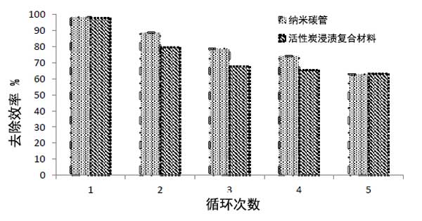圖3:再生試驗(yàn)對(duì)去除活性紅的影響。
