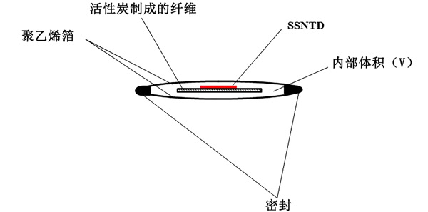 帶溫度補(bǔ)償?shù)幕钚蕴刻綔y器模塊設(shè)計(jì)如圖1所示。內(nèi)部傳感器使用活性炭吸附器和固體核徑跡探測器(SSNTD)。在本實(shí)驗(yàn)中,使用了三種活性炭制成的纖維。活性炭用作氡收集器/散熱器,而SSNTD則檢測輻射量。補(bǔ)償模塊的壁由低密度聚乙烯或高密度聚乙烯箔制成。根據(jù)造型選擇箔的厚度和表面積,以達(dá)到合適的溫度補(bǔ)償。。當(dāng)探測器在探測器模塊外時(shí),校準(zhǔn)系數(shù)為CF0。然而,當(dāng)探測器放置在其校準(zhǔn)因子內(nèi)時(shí),平衡時(shí)將為CF =CF0.ρ,其中ρ是“穿透率”,即模塊體積內(nèi)空氣中的平衡時(shí)氡濃度與濃度的比值在它周圍的空氣中。CF0與吸附容量k成正比并且遵循與k相同的溫度趨勢,而CF與kρ成正比。正如在其他地方所指出的,穿透體積中壁的部分ρ隨著溫度的升高而增加,因此溫度的趨勢與k的趨勢相反。選擇氣體擴(kuò)散通過的壁材、厚度、壁表面積和“補(bǔ)償模塊”的體積,以使kρ的溫度變化在應(yīng)用的溫度區(qū)間內(nèi)盡可能小。