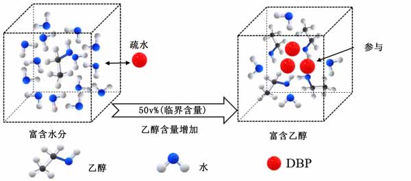 圖2:活性炭吸附過程中DBP和水-乙醇簇的機理圖。