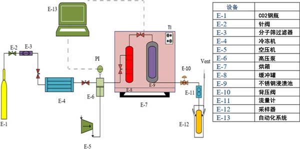 首先,來(lái)自儲(chǔ)罐的CO2通過(guò)標(biāo)稱尺寸為1µ的過(guò)濾器,以避免任何雜質(zhì)進(jìn)入工藝路徑。然后,CO2被引導(dǎo)至冰箱單元,其溫度降至-10℃和60bar。液化CO2使用往復(fù)泵加壓,并轉(zhuǎn)化為殼管式配置的調(diào)壓鼓。在這個(gè)鼓中,流體溫度被設(shè)置為適當(dāng)?shù)臏囟纫赃_(dá)到超臨界流體條件。該鼓的設(shè)計(jì)旨在減少波動(dòng),熱交換通過(guò)使用溫度精度設(shè)置為1K的1000W元件循環(huán)水進(jìn)行。壓力表安裝在調(diào)壓鼓的輸出端,以顯示出口流體壓力。之后,液體被引導(dǎo)到裝有10克活性炭和玻璃珠的萃取池。在提取單元的輸入和輸出處安裝了兩個(gè)孔隙率為1微米的過(guò)濾器,以防止顆粒逸出。細(xì)胞中玻璃珠的存在使CO2均勻分布在提取單元內(nèi)。在用SC-CO2加載萃取池后,將萃取池設(shè)置在適當(dāng)?shù)臏囟群蛪毫ο录s45分鐘。在靜態(tài)階段之后,動(dòng)態(tài)階段從打開采樣閥開始。為了防止閥門凍結(jié),它被包裹在加熱元件中。在動(dòng)態(tài)時(shí)間內(nèi),使用冰柜將樣品采集溫度保持在0℃以下。每個(gè)實(shí)驗(yàn)一式三份進(jìn)行,圖1顯示了超臨界流體裝置的詳細(xì)信息,通過(guò)將每個(gè)初始活性炭的溶質(zhì)重量除以計(jì)算超臨界回收率。