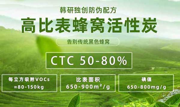 比表面積是指單位質(zhì)量活性炭所具有的表面積。它是衡量活性炭吸附性能的重要指標(biāo)之一。比表面積越大,活性炭的吸附能力越強(qiáng),因?yàn)樗軌蛱峁└嗟谋砻娣e來(lái)吸附有害氣體或異味分子。一般來(lái)說(shuō),韓研的活性炭的比表面積可以達(dá)到900㎡/g以上,而普通活性炭的比表面積可能在100~600㎡/g之間。此外,除了比表面積之外,還需要關(guān)注其他參數(shù)指標(biāo)如孔徑分布、孔容率等等。這些參數(shù)也會(huì)影響活性炭的吸附效果。只有選擇了適合自己需求的活性炭才能更好地發(fā)揮其吸附作用。因此,在選擇氣體處理活性炭時(shí)需要綜合考慮多個(gè)因素,如CTC值、比表面積、機(jī)械強(qiáng)度等等。只有選擇了適合自己需求的活性炭才能更好地發(fā)揮其吸附作用。