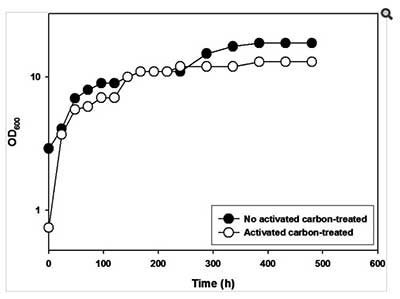 據(jù)報(bào)道,酸水解產(chǎn)物中的呋喃衍生物(糠醛和5-羥甲基糠醛)和酚類化合物是有毒的并且可以抑制生物乙醇生產(chǎn),在酸水解產(chǎn)物中發(fā)現(xiàn)約0.6-3.0g / l的水平。以前的報(bào)告回顧了酸性水解產(chǎn)物的治理。活性炭處理導(dǎo)致呋喃衍生物減少92%,5-羥甲基糠醛減少68%,酚類化合物總量減少約1.25-0.5克/ 升。通過活性炭處理從水解產(chǎn)物中去除有毒物質(zhì)是非?煽康摹