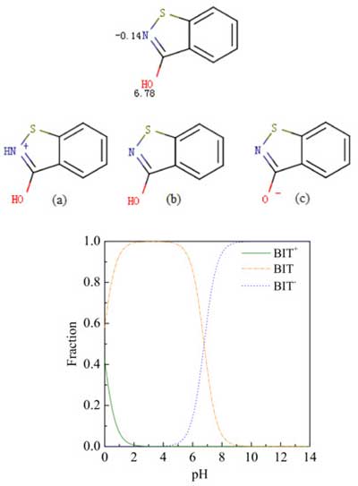 圖2顯示了根據(jù)它的pKa在不同pH條件下BIT的狀態(tài)。BIT的狀態(tài)是(b)在pH2-6,這是非離子和疏水的,導(dǎo)致高吸附。當(dāng)pH為7-12時(shí),BIT保持負(fù)電荷,這意味著它與水具有緊密的親和性并且被活性炭吸附不良。當(dāng)pH<4時(shí),OIT已經(jīng)收取官能團(tuán),這影響了吸附。在pH>pH pzc時(shí),帶負(fù)電的氧官能團(tuán)也阻礙OIT在活性炭上的吸附。官能團(tuán)也影響活性炭的吸附。