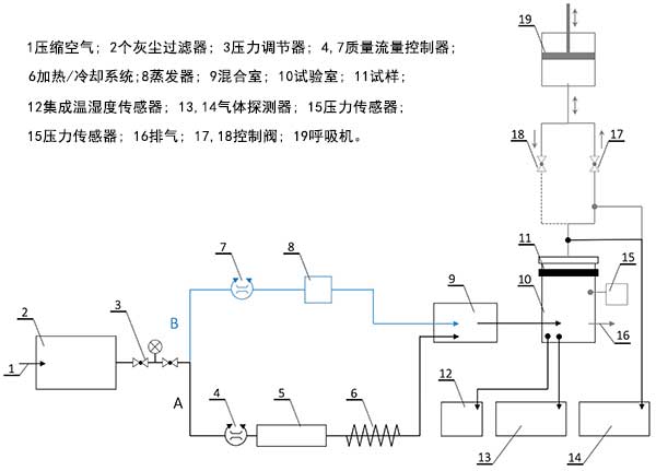 使用環(huán)己烷蒸氣作為被吸附物質(zhì)在圖2中所示的試驗臺上進(jìn)行突破性實驗。選擇環(huán)己烷進(jìn)行實驗,因為它是測試標(biāo)準(zhǔn)中特性比較全面的。此外,測試設(shè)置如圖2所示由于這種情況,優(yōu)化了使用環(huán)己烷作為測試物質(zhì)。環(huán)己烷是這類物質(zhì)的良好代表,因為它是非極性和非反應(yīng)性的,因此應(yīng)主要通過物理吸附與活性炭表面結(jié)合。此外,它是在工業(yè)過程中大量使用的化合物之一,因此它經(jīng)常存在于工作環(huán)境中。