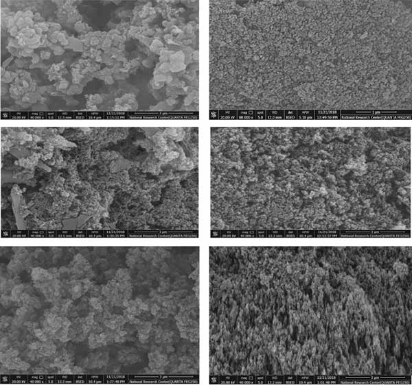對(duì)于SEM研究的情況,活性炭的形態(tài)顯示出不均勻和粗糙的表面(圖2)。在放大倍數(shù)為40000時(shí),可以看出表面被硅磷酸鹽晶體覆蓋。來自稻草的蘇打制漿黑液的活性炭具有較高的硅磷酸鹽晶體。然而,使用中性亞硫酸鹽制漿黑液的活性炭中只有較低的晶體。