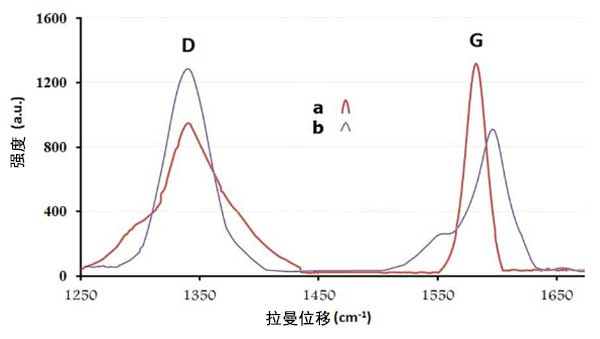 圖2:拉曼光譜:(a)石墨烯(b)活性炭復(fù)合物。