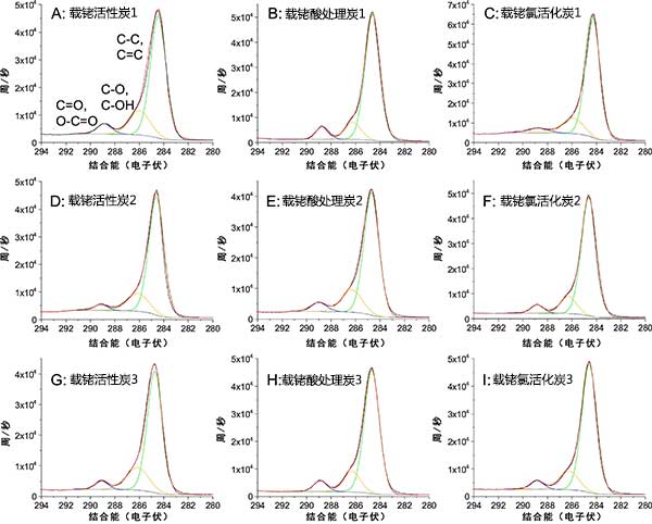 在我們的案例中,我們對(duì)所有9種活性炭催化劑進(jìn)行了詳細(xì)的X射線光電子能譜分析。但是,我們應(yīng)該注意到,就表面原子組成而言,沒(méi)有檢測(cè)到信號(hào)。我們將此結(jié)果歸因于銠的固有低信號(hào),并且我們的銠中心極其分散在我們的碳基質(zhì)中,反過(guò)來(lái)非常低的暴露金屬部分用于有意義的檢測(cè),X射線粉末衍射儀分析也證實(shí)了這一點(diǎn)。