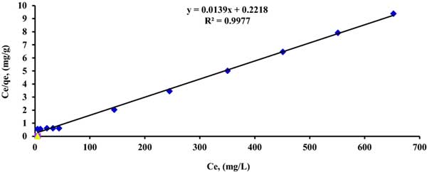 吸附等溫線可以清楚地表征釷與改性活性炭吸附劑的相互作用途徑。平衡研究通常用于吸附過程的設計和理解吸附機理。釷離子可以通過幾種機制吸附在固體載體的表面上。根據(jù)蘭茂爾吸附等溫式的假設,釷的吸收作用在單層均勻的表面上,并且所有金屬結(jié)合位點在能量上相同。
