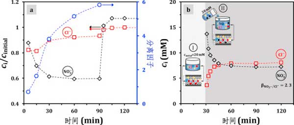 硝酸鹽和氯化物的電吸附:離子選擇性由動力學(xué)和平衡控制