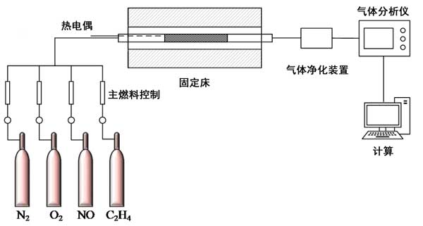 催化測試的實驗裝置如圖1所示。將每種活性炭樣品放入固定床石英管反應器中,該反應器由溫控爐外部加熱。氣體流速通過質量流控制器控制,與模擬氣體混合物調節(jié)至500ppm NO,500ppm的乙烯,3.0%(體積)Ò 2和N 2為平衡流量,總流量為1500 ml/min。在每個測試的催化劑溫度達到穩(wěn)定的設定點之后,將氣體混合物注入反應器中。進出氣中NO和NO X的濃度用煙氣分析儀分析。下標的進和出分別指示入口和出口的濃度。