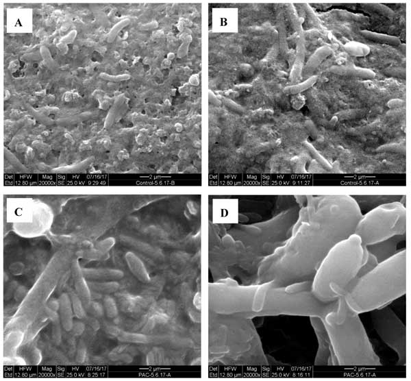 由于添加了活性炭的膜生物反應(yīng)器膜滲透性的更大降低可能歸因于活性炭顆粒,因此在第一個(gè)實(shí)驗(yàn)結(jié)束時(shí)對(duì)結(jié)垢的膜進(jìn)行SEM成像(圖3)。沒(méi)有觀(guān)察到來(lái)自活性炭和對(duì)照的生物膜形態(tài)的主要差異,并且在兩種情況下,均檢測(cè)到EPS基質(zhì)中的包埋細(xì)胞。值得注意的是,從填充了活性炭的反應(yīng)器收集的任何樣品中都未發(fā)現(xiàn)活性炭顆粒(圖3c,d)。因此,在活性炭反應(yīng)器中跨膜壓力的升高和膜滲透性的更高降低不能歸因于活性炭顆粒對(duì)膜的物理阻塞。