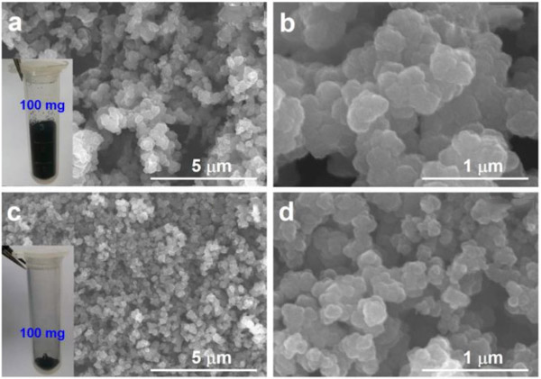 圖2中的插圖是兩種活性炭的數(shù)碼照片。當將相同量的兩種活性炭(100 mg)放入相同體積的離心管(5 mL)中時,活性炭-1粉末占據(jù)的體積更大,這表明他的密度較低。通過掃描電子顯微鏡研究了他們的形態(tài)。如圖2所示可以看出,與原始材料相比,兩種活性炭的外觀變化不大。但是,它們的粒徑不同。顯然,活性炭-1的顆粒大于活性炭-2的顆粒。這些顆粒聚集在一起并形成多孔形態(tài)。活性炭-1具有更大的孔徑,表明較疏松的多孔結(jié)構(gòu)。