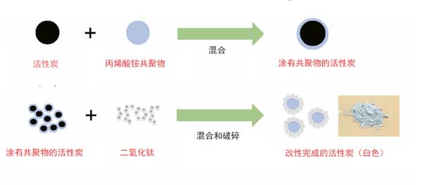 活性炭通常用作出色的多功能吸附劑;钚蕴康亩嗫妆砻婵赏ㄟ^將極薄的化合物層粘附到較大的碳表面積上來使各種化學(xué)物質(zhì)失活。它們通常用于吸附去除飲用水和工業(yè)用水中的顏色,氣味,味道和不良有機(jī)和無機(jī)污染物。此外,活性炭常用于許多化學(xué),食品和其他物質(zhì)的純化。因此,基于我們的發(fā)現(xiàn),活性炭對各種產(chǎn)生體味的化合物表現(xiàn)出高吸附能力,改性后更強(qiáng)。將平均直徑為9.4或40.5μm的活性炭粉與丙烯酸銨共聚物溶液在超純水中完全混合。將平均直徑為0.25μm的二氧化鈦粉末以5-20g的不同濃度添加到混合物中,以制造相應(yīng)的改性活性炭。在115℃下將樣品干燥2小時(shí)后,使用破碎機(jī)通過均勻研磨獲得除異味活性炭(圖1)。并且比較了活性炭與除異味活性炭中所含活性炭的吸附能力。