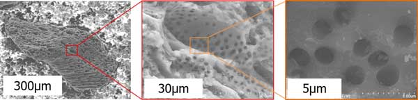 為實(shí)驗(yàn)準(zhǔn)備了兩種類型的樣品,無裂縫標(biāo)本和帶裂縫的標(biāo)本。樣品的尺寸為20×20×4mm。使用丙烯酸板形成裂縫。使用椰殼制備的載銀活性炭(活性炭+0.1%AgCl),并使用氯化銀實(shí)現(xiàn)銀的浸漬。盡管粉末粒度具有寬的尺寸分布,但250-500μm的顆粒占約90%的顆粒。圖2顯示了活性炭表面結(jié)構(gòu)的掃描電子顯微鏡(SEM)圖像:發(fā)現(xiàn)其表面是多孔的,并且在大孔內(nèi)部觀察到幾個(gè)中孔。在實(shí)驗(yàn)期間使用恒電位儀在兩種條件下測量樣品的開路電位:與活性炭接觸和不接觸活性炭。在實(shí)驗(yàn)之后,使用光學(xué)顯微鏡觀察樣品表面。測量在開路條件下進(jìn)行近40小時(shí)(在中性溶液中)和24小時(shí)(在堿性溶液中)。